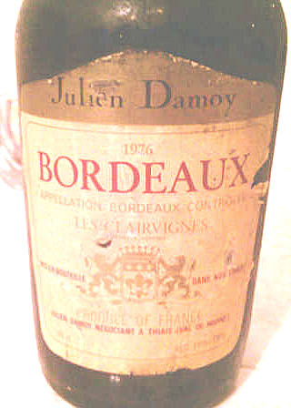 I suspect that Cavan doesn’t have any hidden gems. Although 1976 was quite a good year in Bordeaux , even the top wines are getting very mature. The first photo shows a wine from the appellation of Côtes de Bordeaux, presumably red. This appellation no longer exists, the designation Première Côtes de Bordeaux being used mainly for sweet white wines. The second photo shows a merchant claret from Julien Dumay, a basic AC Bordeaux.