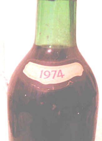 The third bottle, which only has a neck label, looks an Italian shape. You can see how low the level of wine in the bottle has fallen – the whole of the neck is empty. Whatever wine was in the bottle will have become oxidised by the air that has got in, so the wine is likely to taste like an old sherry or madiera, or like vinegar if the process has gone a long way. The last bottle is a Valpolicella Superiore (i.e. slightly stronger in alcohol than the basic wine. I don’t recognise the maker. Valpolicella is a wine made for early drinking – in the 1970s, the Italian taste of subdued wines would mean that there would have been little fruit taste to start with: there certainly won’t be any now.